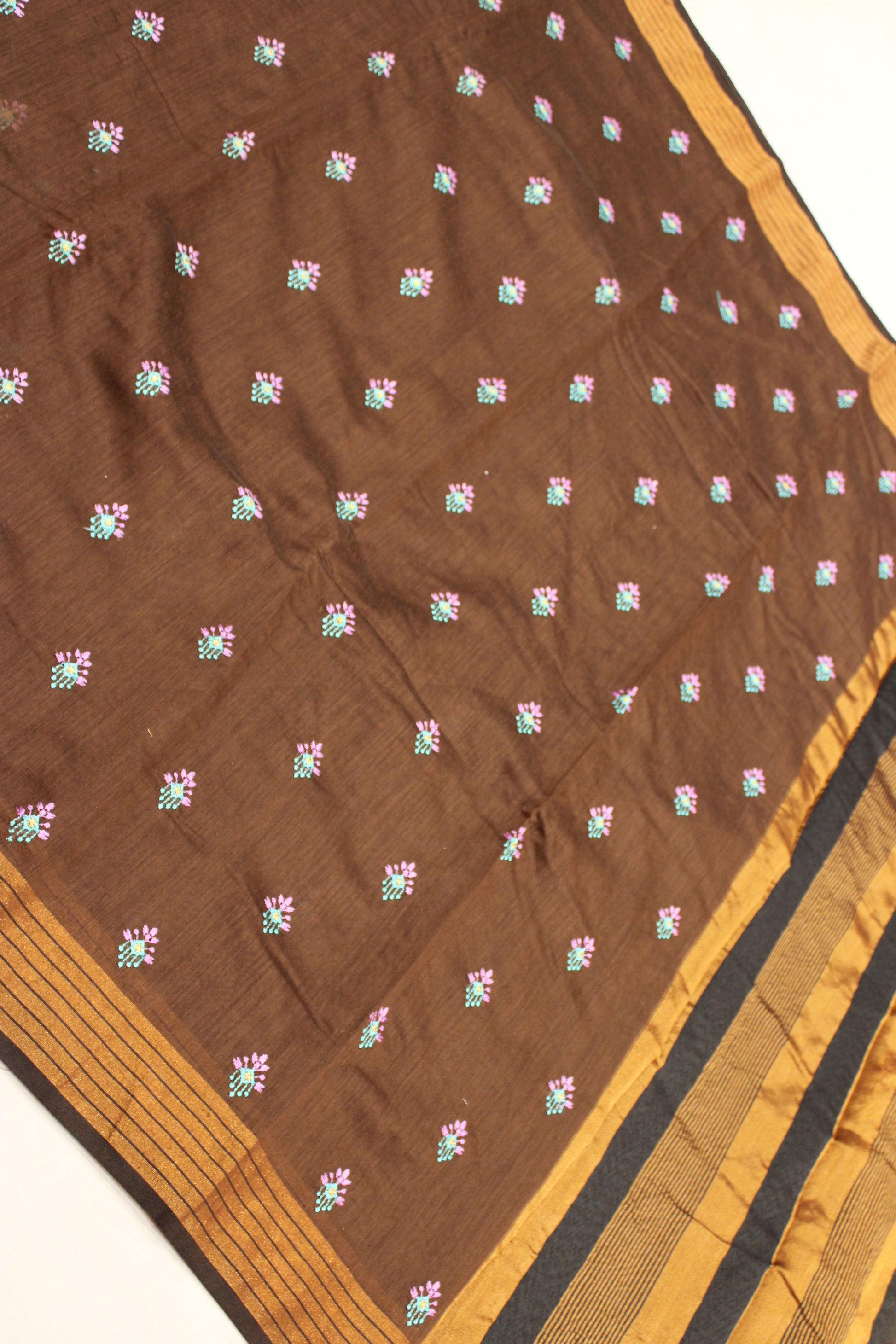 🀎 VLS 436 | Brown Maheshwari Cotton Saree with Resham Boota Work 🀎