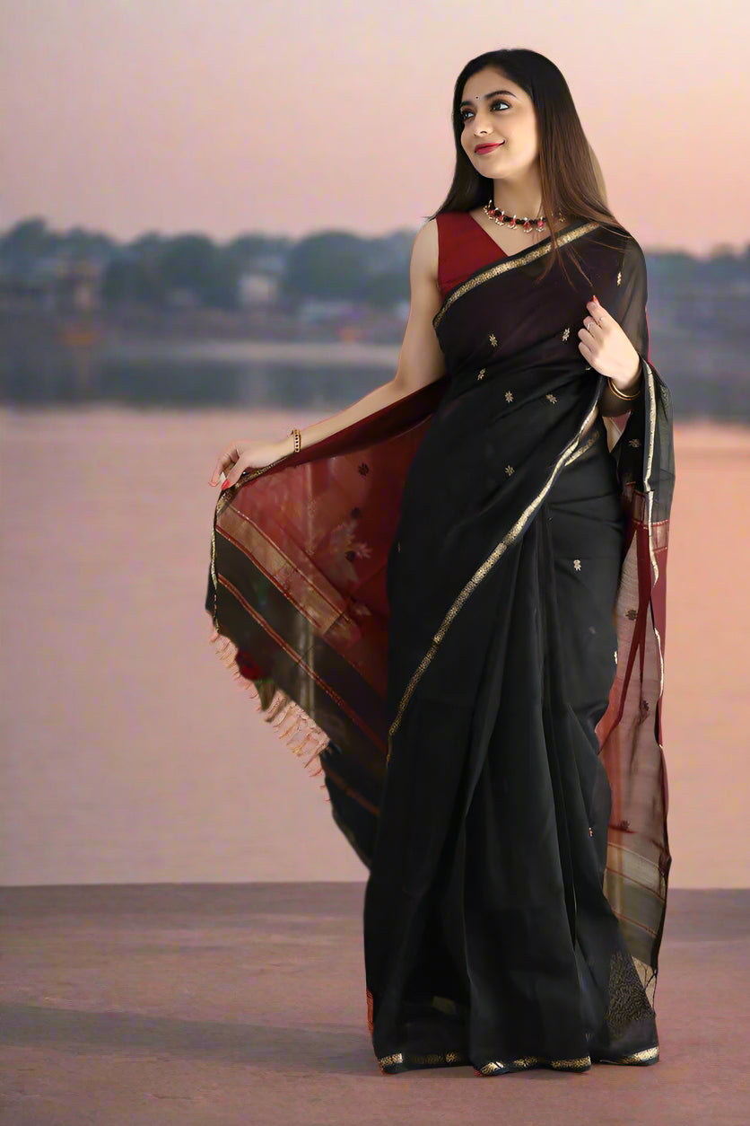 Cotton Booty Handloom Banarasi Saree – All Over Resham Booti