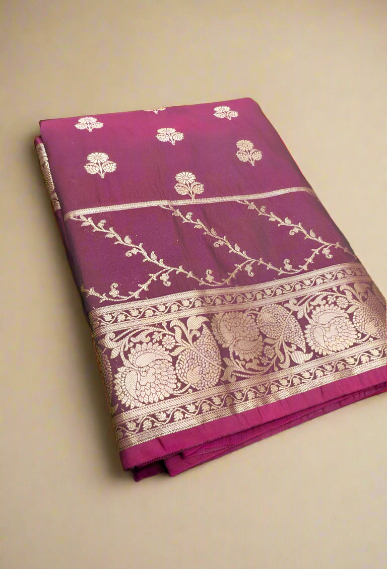 Weaving Style: All-over handcrafted motifs with fine zari detailing